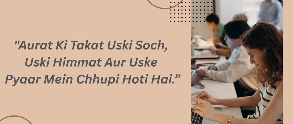 👉 Ek aurat ki sabse badi takat uski mental aur emotional strength, patience aur har situation mein khud ko sambhalne ki ability hoti hai.